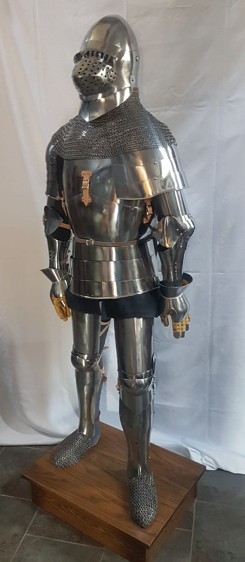 Armour is complete with a mannequin. Gauntlets, fauld, and spaudler / pauldron were made by myself, the rest of the components were pieces made by other armorers which I refurbished.