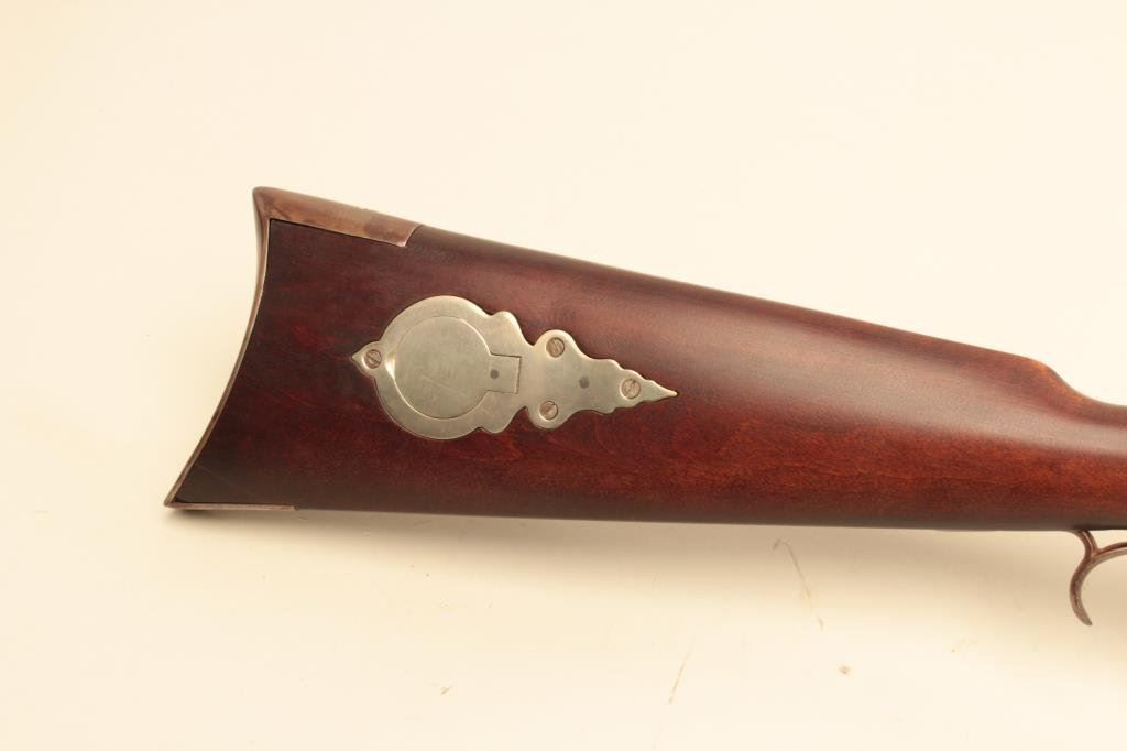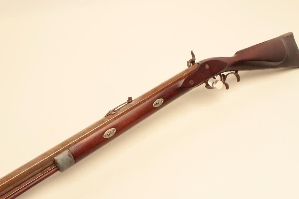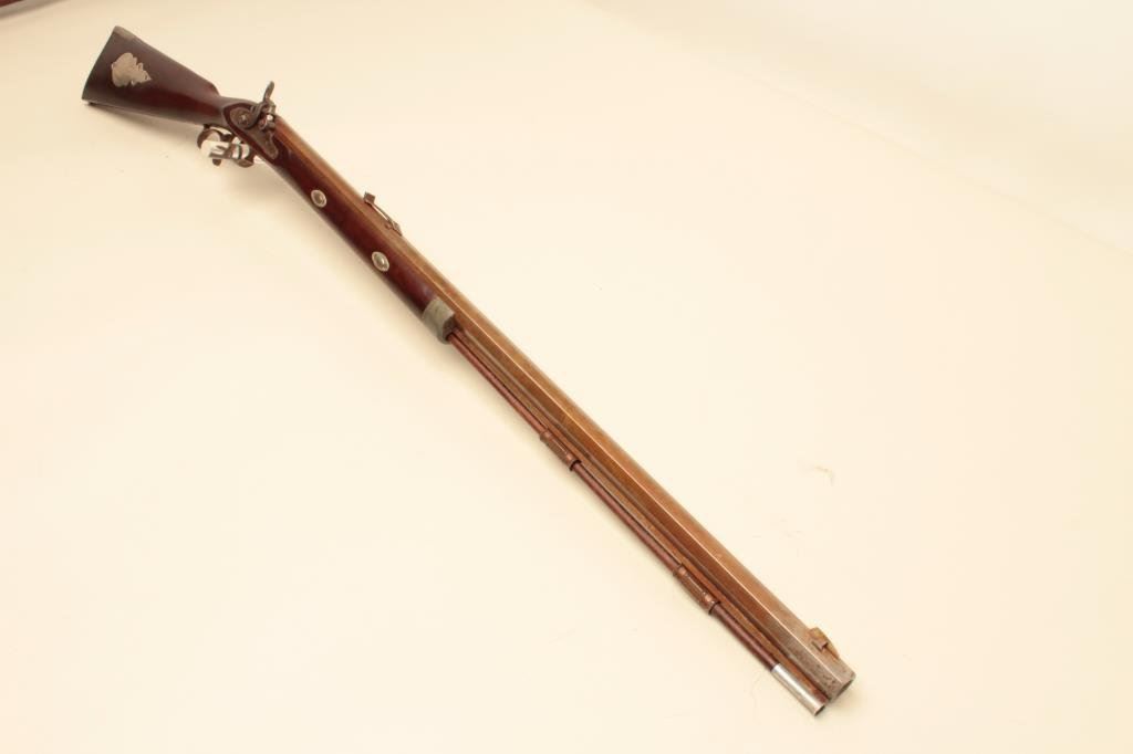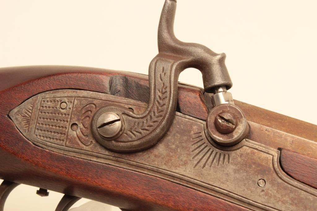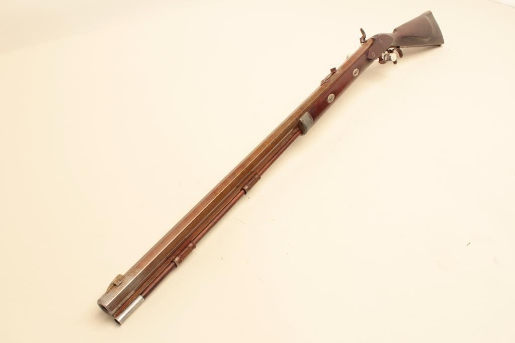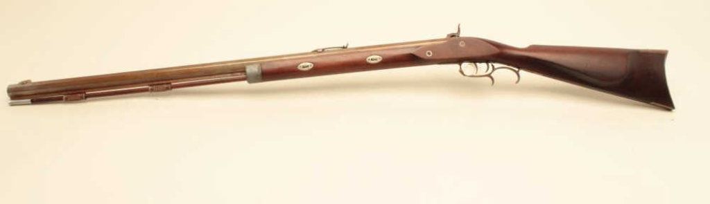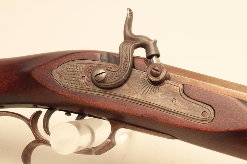32” octagon barrel, double set triggers (working at time of description), wood stock with patchbox, S/N 0035987, in overall very good condition with a crisp action and very good wood. (Percussion). Est.: $100-$200.