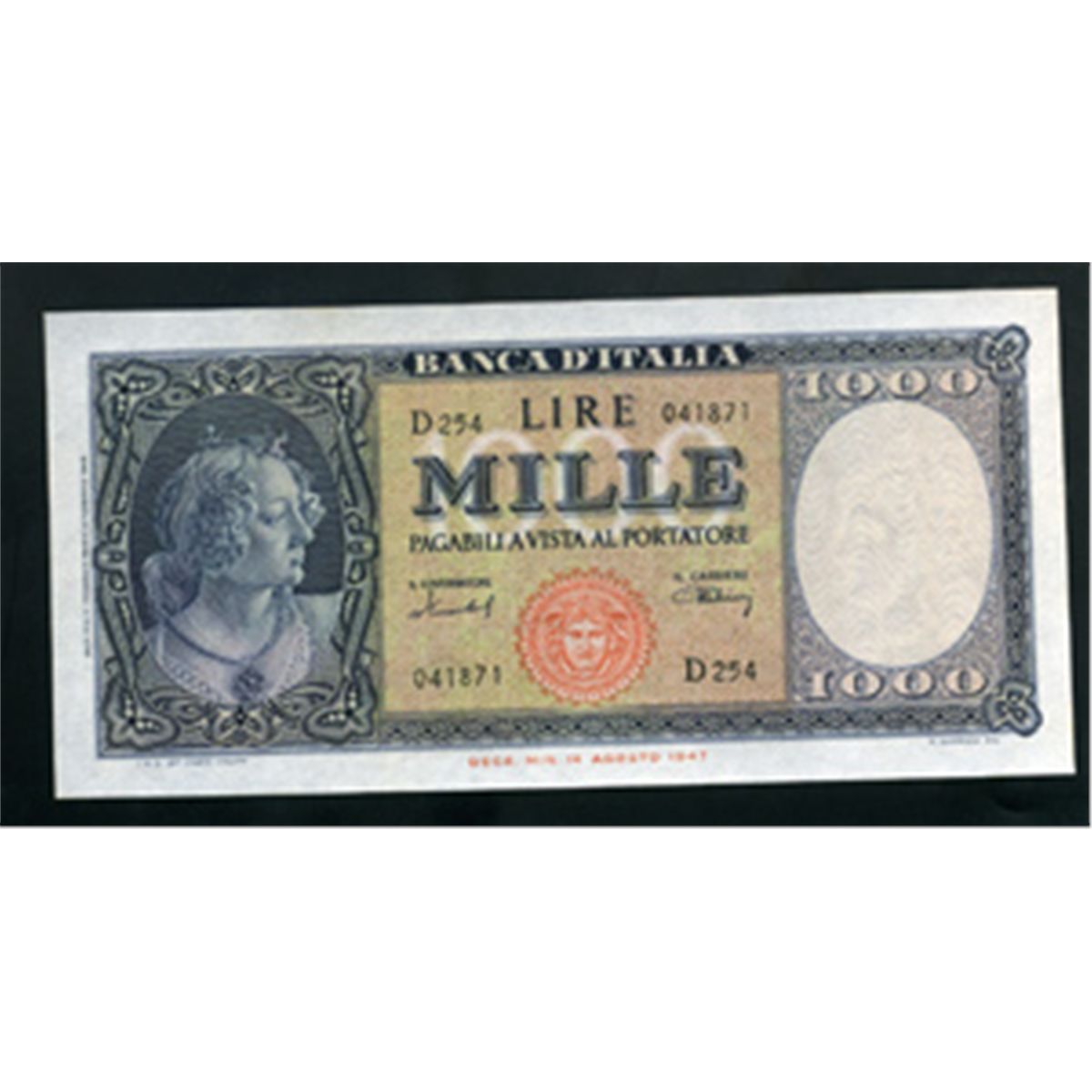Cartamoneta. Repubblica Italiana. 1.000 lire, 'Busto dell'Italia', 11/2/1949. A. BI.697. RRR. Biglietto lavato. SPL.