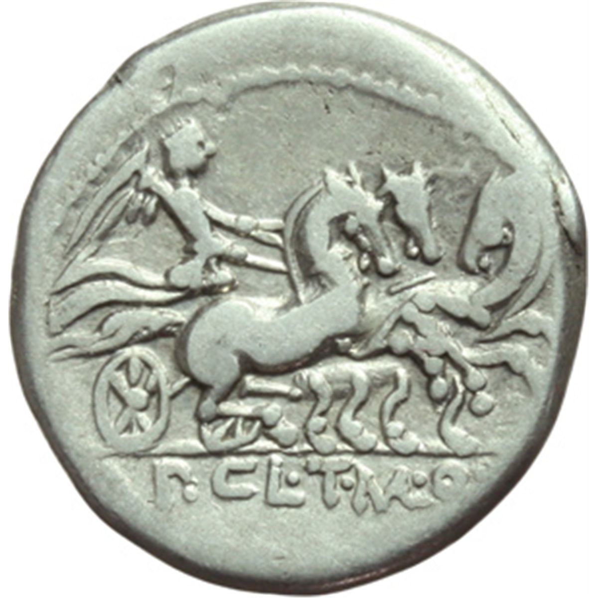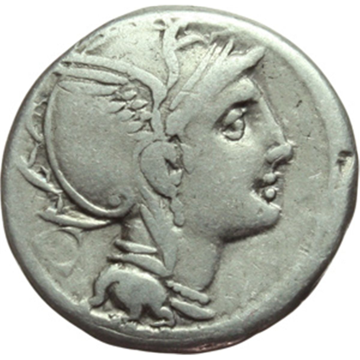 Repubblica Romana. Appius Claudius Pulcher, T. Manlius Mancinus e Q. Urbinius. Denario, 111-110 a.C. D/ Testa di Roma a destra. Dietro, anello triangolare. R/ Vittoria in triga a destra. In esergo: AP.CL.T. MANIL. Q. VR. Cr.299/1a. B.2. AG. g. 3.85 mm. 17.00 BB.