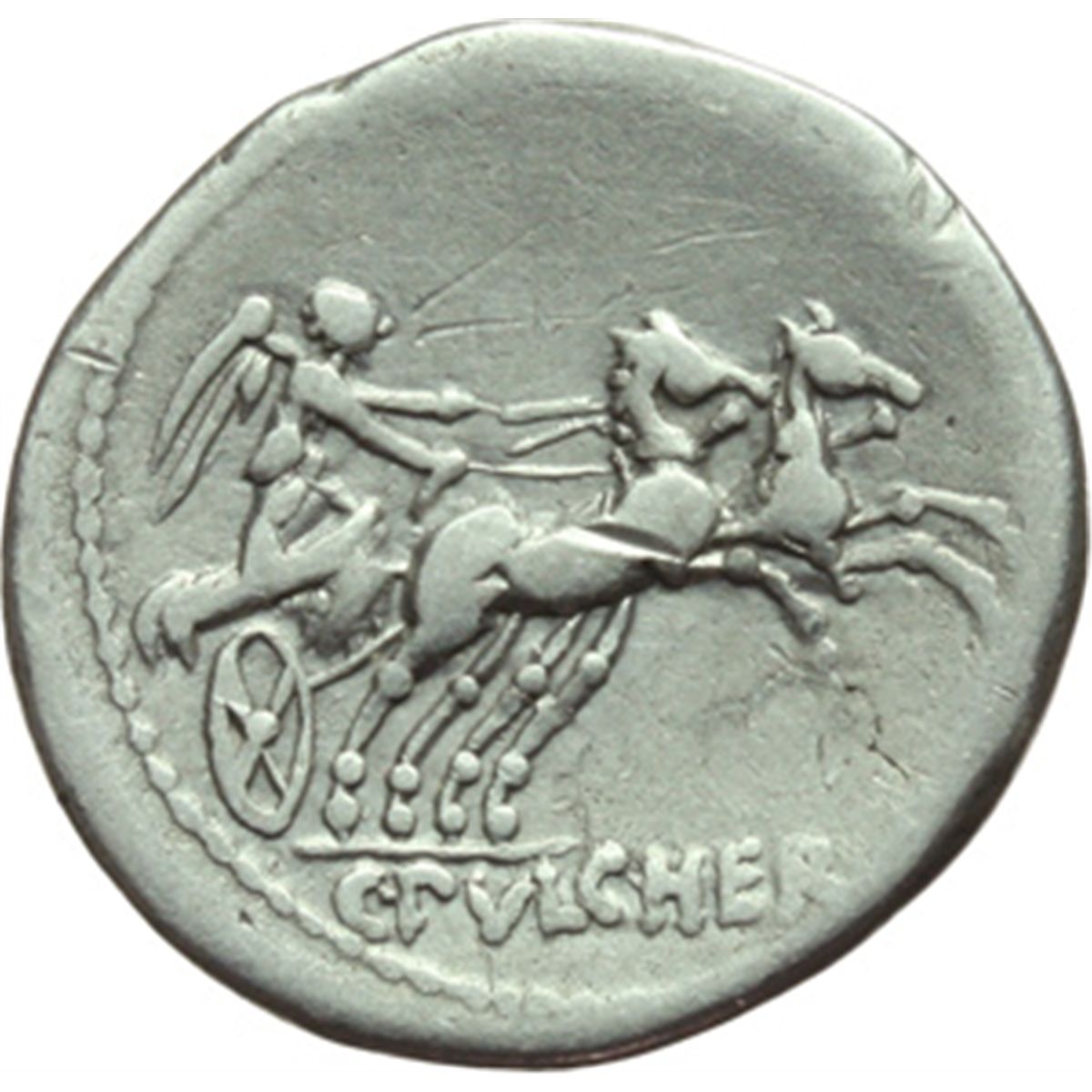 Repubblica Romana. C. Claudius Pulcher. Denario, 110-109 a.C. D/ Testa di Roma a destra. R/ Vittoria in biga a destra. In esergo: C. PVLCHER. Cr.300/1. B.1. AG. g. 3.72 mm. 18.00 BB.