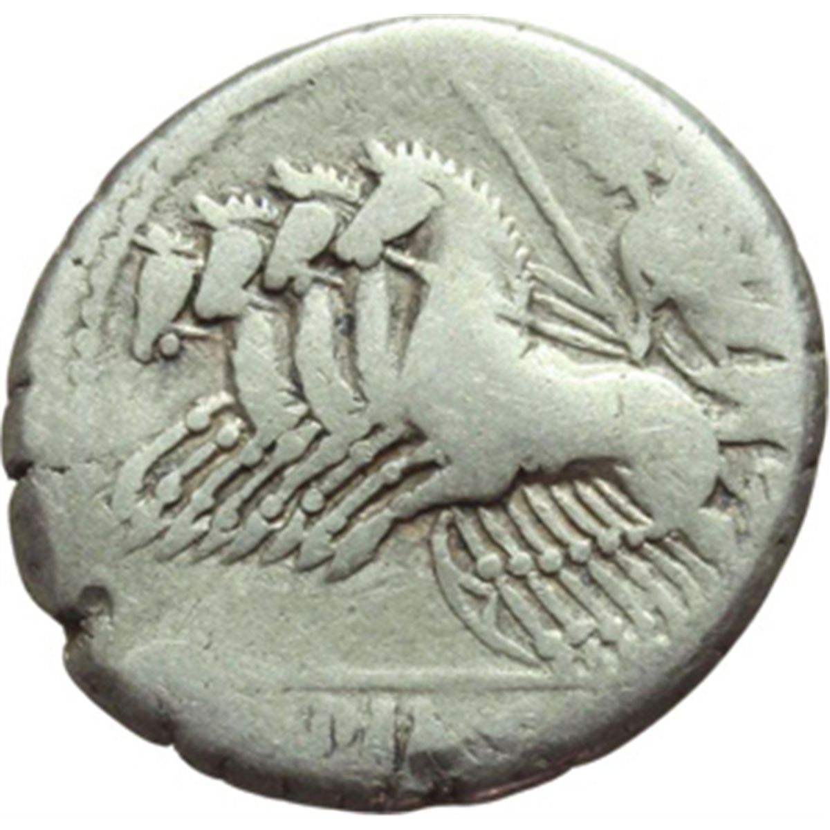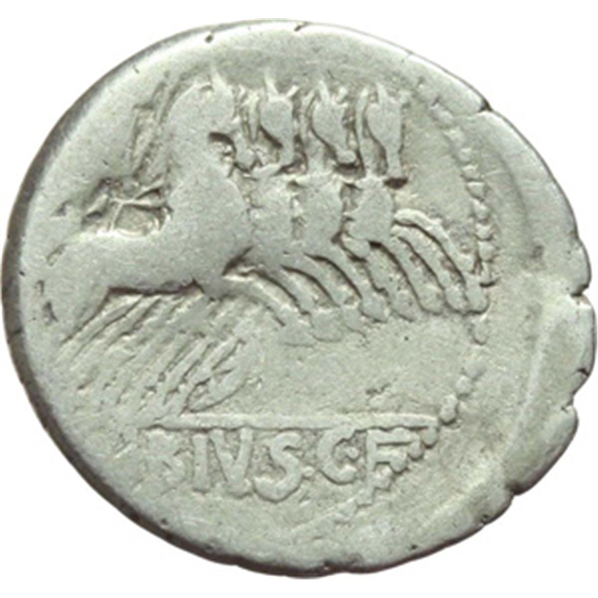Repubblica Romana. C. Vibius C. f. Pansa. Denario, 90 a.C. D/ Minerva in quadriga a sinistra. In esergo: PANSA. R/ Minerva in quadriga a destra. In esergo: C. VIBIVS C.F. Cr. 342/6a. B.5. AG. g. 3.74 mm. 18.50 R. MB.