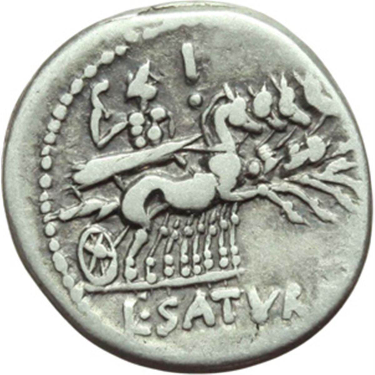 Repubblica Romana. Lucius Appuleius Saturninus. Denario, 104 a.C. D/ Testa di Roma a sinistra. R/ Saturno in quadriga a destra. Sopra, !. In esergo: L. SATVRN. Cr. 317/3a. B.1 var. AG. g. 3.81 mm. 19.00 BB.
