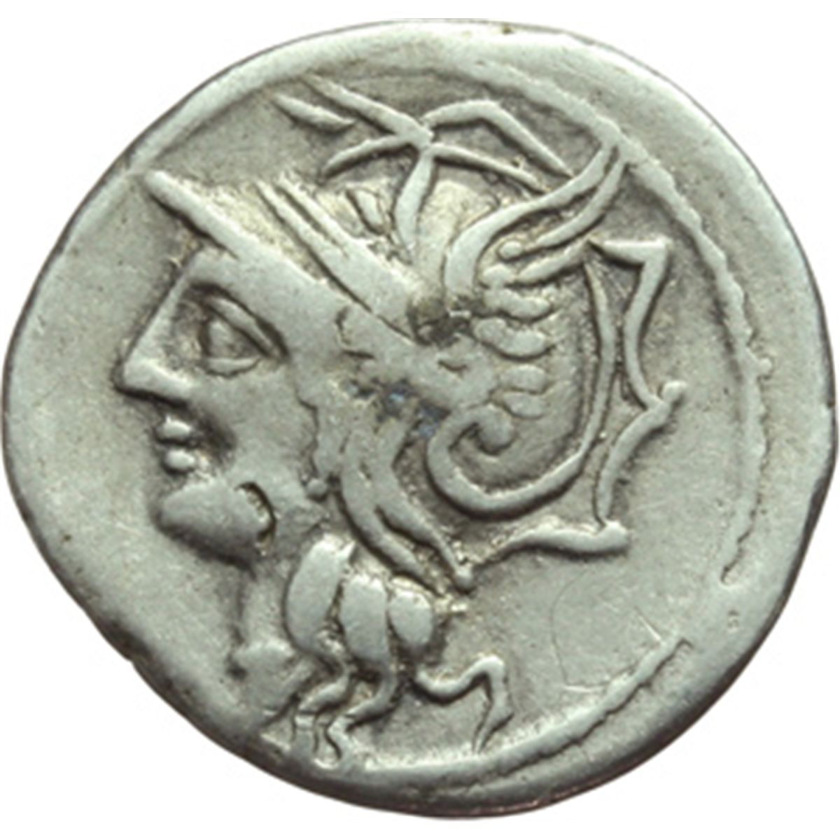 Repubblica Romana. Lucius Appuleius Saturninus. Denario, 104 a.C. D/ Testa di Roma a sinistra. R/ Saturno in quadriga a destra. Sotto i cavalli, Θ punto. In esergo: L. SATVRN. Cr.317/3b. B.1. AG. g. 3.78 mm. 20.00 BB.