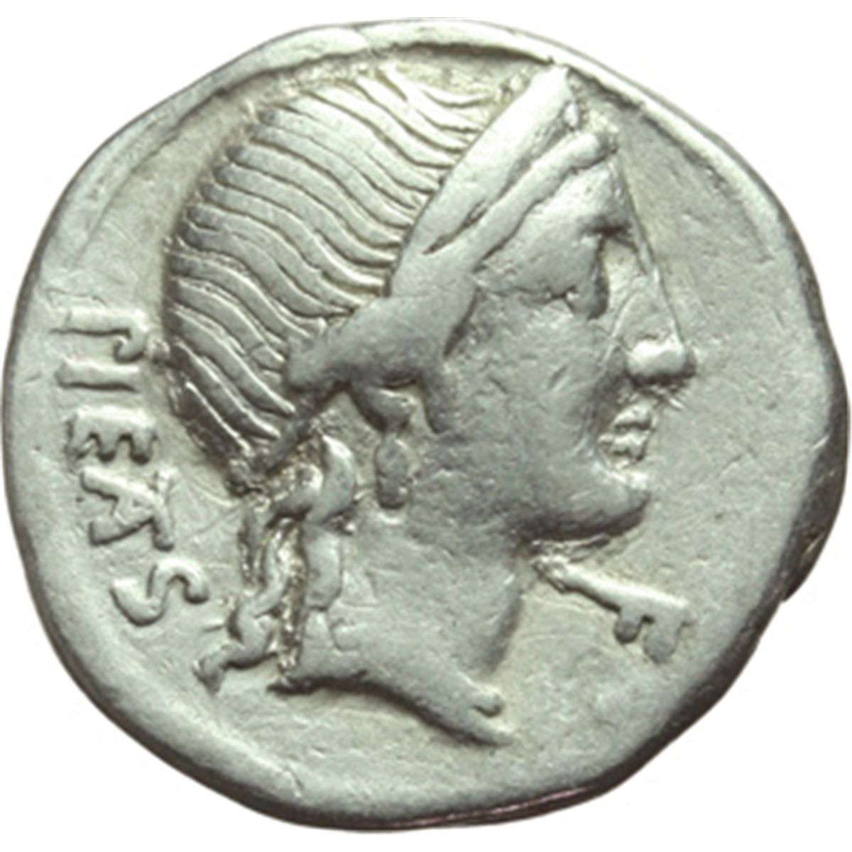 Repubblica Romana. M. Herennius. Denario, 108-107 a.C. D/ PIETAS. Testa di Pietas a destra. R/ M. HERENNI. Amphinomus corre a destra trasportando il padre sulle spalle. Cr.308/1. B.1. AG. g. 3.82 mm. 18.00 BB.