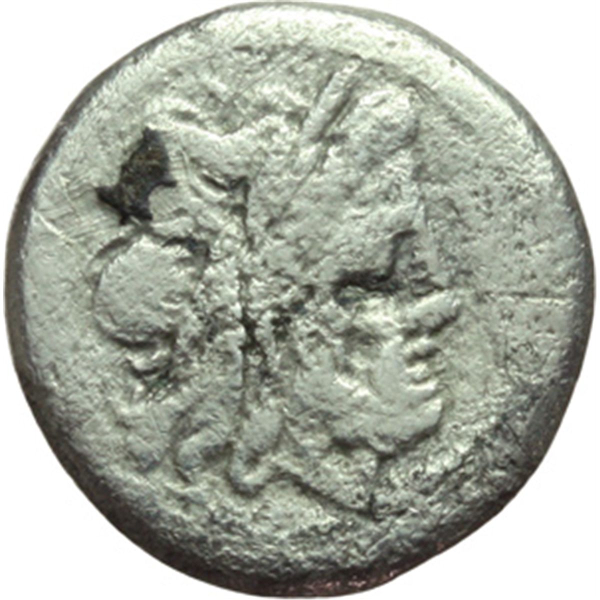 Repubblica Romana. Serie crescente. Vittoriato, 207 a.C. D/ Testa laureata di Jupiter a destra. R/ Vittoria stante a destra incorona un trofeo. Nel campo, crescente. In esergo: ROMA. Cr.57/1. AG. g. 2.34 mm. 16.00 R. MB.