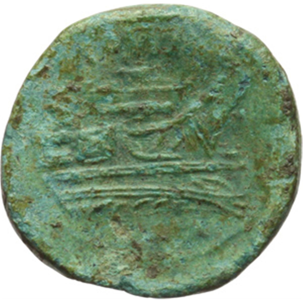 Repubblica Romana. Serie semilibrale. Semuncia, 217-215 a.C. D/ Testa di Mercurio a destra. R/ Prua a destra. Sopra, ROMA. Cr. 38/7. AE. g. 6.39 SPL/qSPL. Straordinaria patina verde turchese.