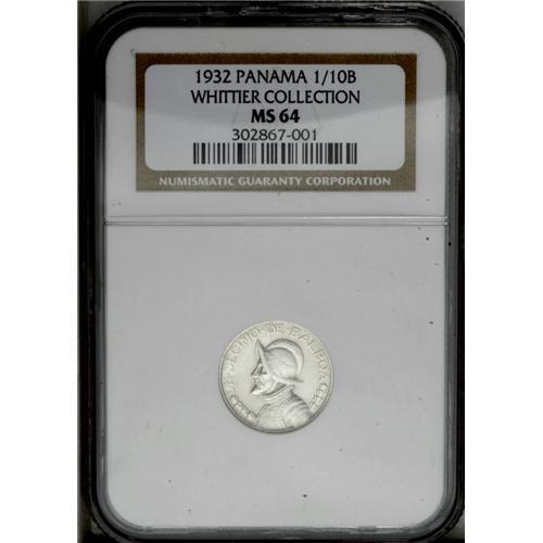 <B>Republic 1/10 Balboa 1932, </B></I>KM10.1, MS64 NGC, fully lustrous with virtually perfect surfaces, very scarce grade for this date.
