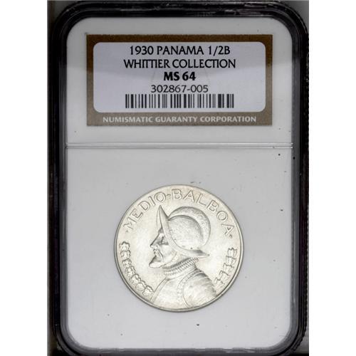 <B>Republic 1/2 Balboa 1930, </B></I>KM12.1, MS64 NGC, highly attractive with full glowing mint bloom.