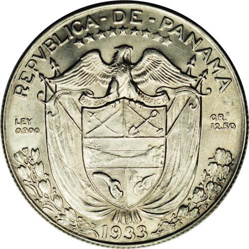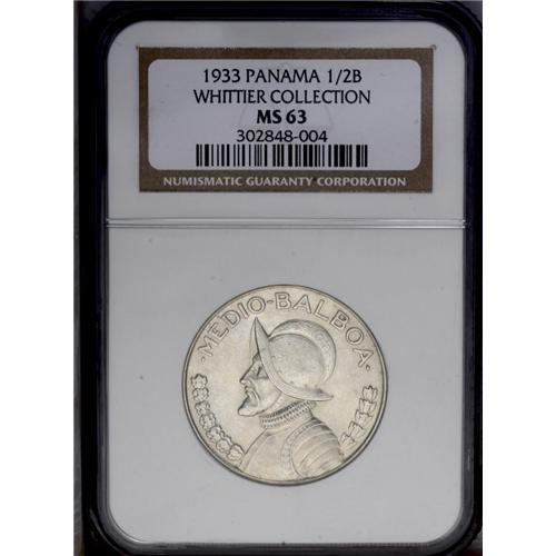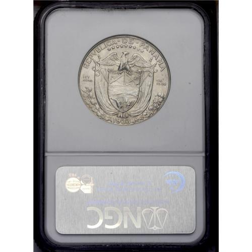 <B>Republic 1/2 Balboa 1933, </B></I>KM12.1, MS63 NGC, a choice, fully lustrous example, and a rare date in mint state.