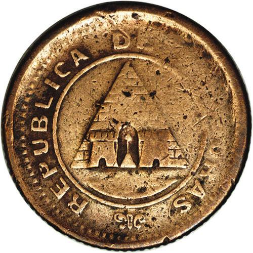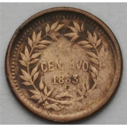<B>Republic 1/2 Centavo 1883, </B></I>KM45, crude Fine, cleaned and now toning, rare date.