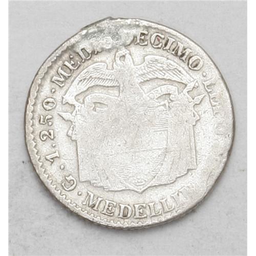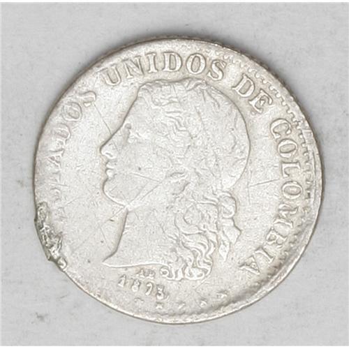 Republic 1/2 Decimo 1873-AB Medellin, KM150.4, Fine, mo Republic 1/2 Decimo 1873-AB Medellin,