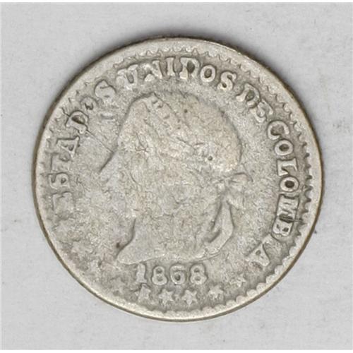 Republic 1/2 Decimo - Two Dates, KM150.2, 1868 Medellin Republic 1/2 Decimo - Two Dates,