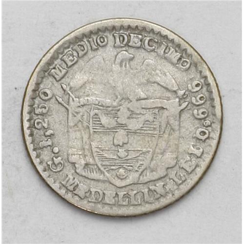 <B>Republic 1/2 Decimo - Two Dates, </B></I>KM150.2, 1868 Medellin, toned Fine, very crude style, rare date, and 1869 Medellin, VG-F, rare date, has been gilt.