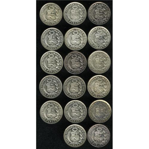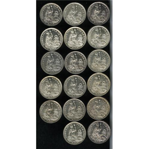 <B>Republic 1/2 Dinero Date Collection, </B></I>seventeen coins, all choice UNC including: 1900-JF, 1901-JF, 1902-JF, 1903-JF, 1904-JF, 1905-JF, 1906-JF, 1907-FG, 1908-FG, 1909-FG, 1910-FG, 1911-FG, 1912-FG, 1913-FG, 1914-FG, 1916-FG and 1917-FG. Careful viewing is recommended as these coins feature overdates in many cases. <B>Sold as is, no return lot.</B></I>
