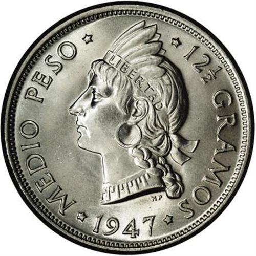 Republic 1/2 Peso 1947, KM21, MS64 NGC, an extremely at Republic 1/2 Peso 1947,