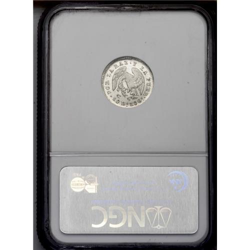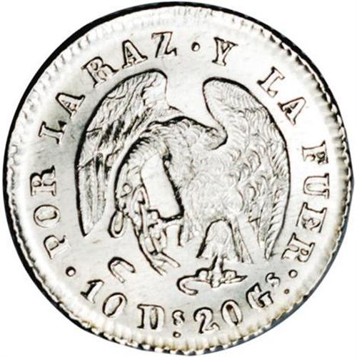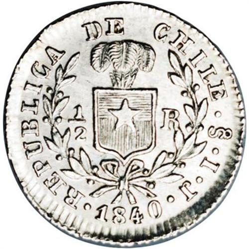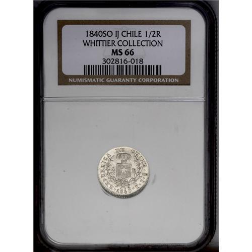 <B>Republic 1/2 Real 1840-IJ, </B></I>KM98.1, MS66 NGC, an incredible example with razor sharp details and full mint brilliance. Perhaps the finest known and a coin with immediate visual impact. The reverse (condor side) is virtually perfect. Reverse legend POR LA RAZ.