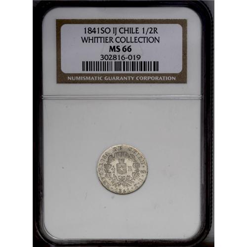 Republic 1/2 Real 1841-IJ, KM98.3, MS66 NGC, a superb e Republic 1/2 Real 1841-IJ,