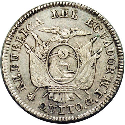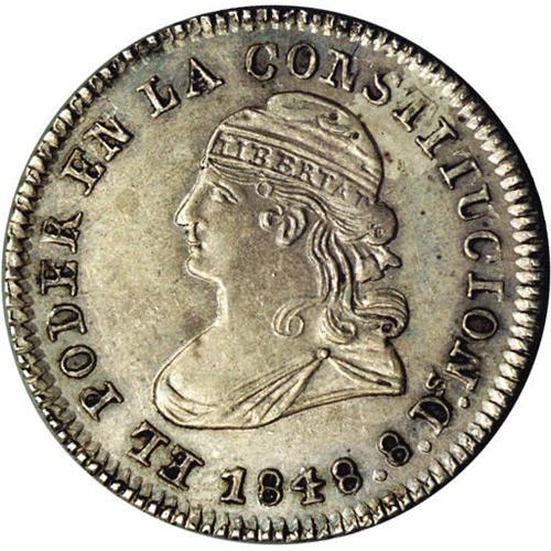<B>Republic 1/2 Real 1848-GJ, </B></I>KM35, choice AU-UNC, lightly toned with reflective surfaces indicative of a possible Specimen or Proof striking. The design details are unusually sharp and the overall impact of the coin is most attractive.