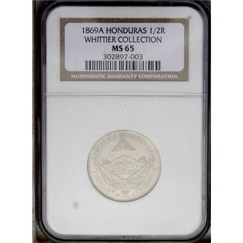 <B>Republic 1/2 Real 1869A, </B></I>KM32, MS65 NGC, a superb fully brilliant example of this otherwise mundane date.