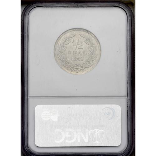 Republic 1/2 Real 1869A, KM32, MS65 NGC, a superb fully Republic 1/2 Real 1869A,