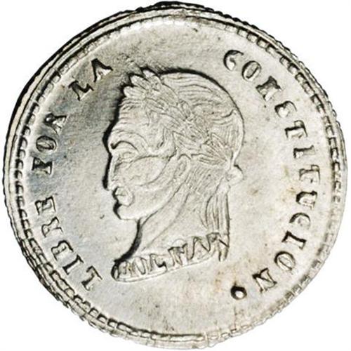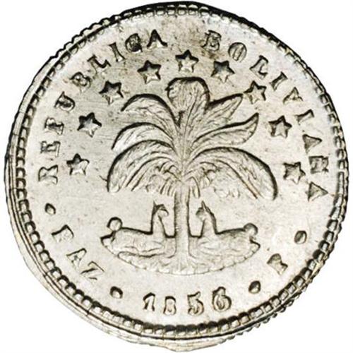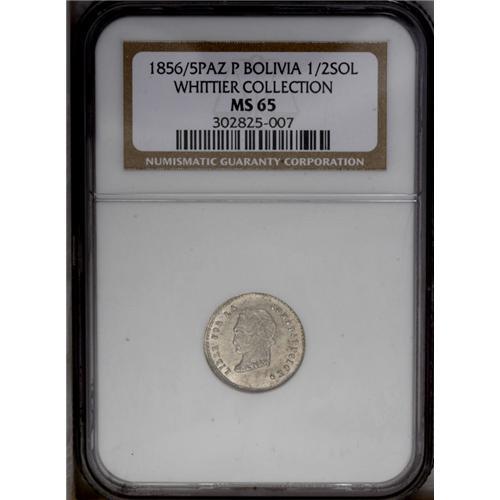 <B>Republic 1/2 Sol 1856/5-P Paz, </B></I>KM127, MS65 NGC, a magnificent little coin with very strong details and full mint bloom.