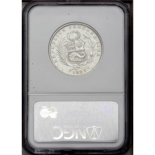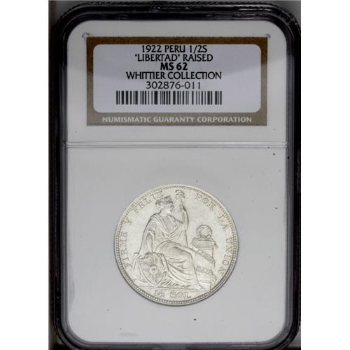 <B>Republic 1/2 Sol 1922 Raised Libertad, </B></I>KM216, MS62 NGC, scarce date.