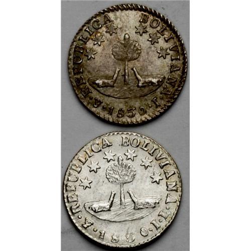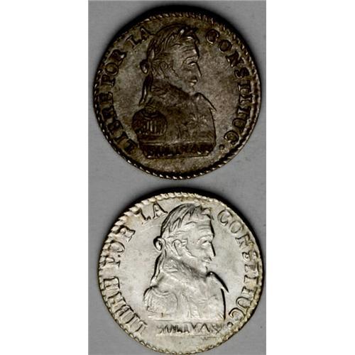 <B>Republic 1/2 Sol - Choice Pair, </B></I>KM93.2a, 1830-J, toned UNC, and 1830-JL, brilliant UNC, both with six-pointed stars.