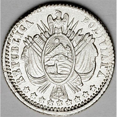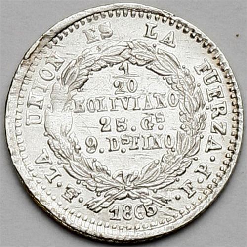 Republic 1/20 Boliviano 1865-FP, KM149, lustrous UNC, f Republic 1/20 Boliviano 1865-FP,