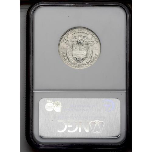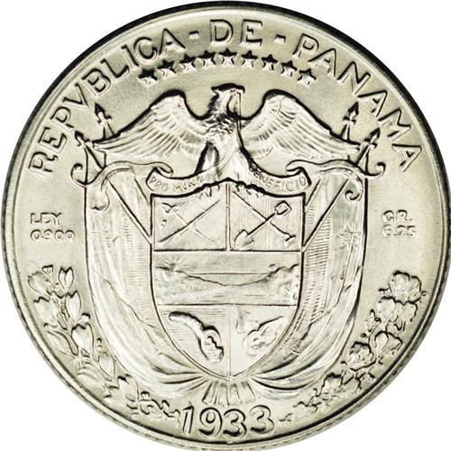<B>Republic 1/4 Balboa 1933, </B></I>KM11.1, MS63 NGC, a superior example with flashy mint luster and very nice surfaces. Rare grade for this date. (The holder incorrectly gives the date as 1932, however we will resubmit this coin on request.)