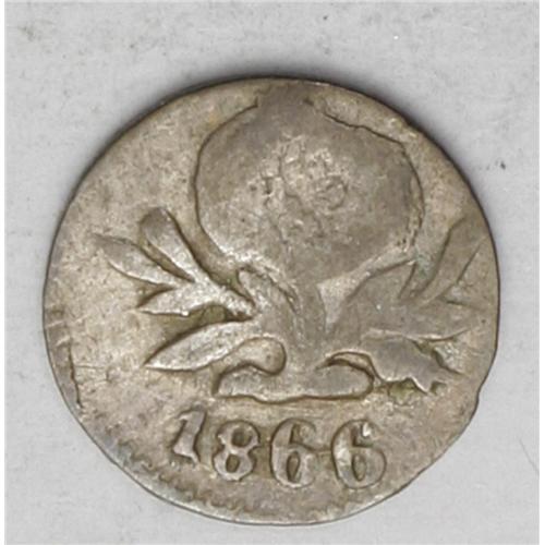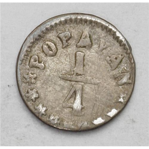 <B>Republic 1/4 Decimo 1866 Popayan, </B></I>KM143.2, nice toned VF, typically crude for this mint, very rare date.