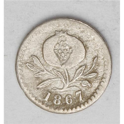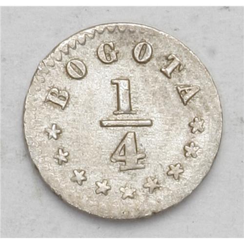 <B>Republic 1/4 Decimo 1867 Bogota, </B></I>KM143.1, superb toned UNC, full mint brilliance. Rare condition.