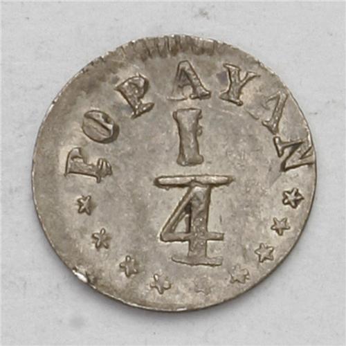 Republic 1/4 Decimo 1873/2 Popayan, KM143.2a, fineness Republic 1/4 Decimo 1873/2 Popayan,
