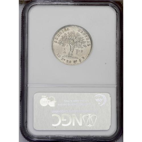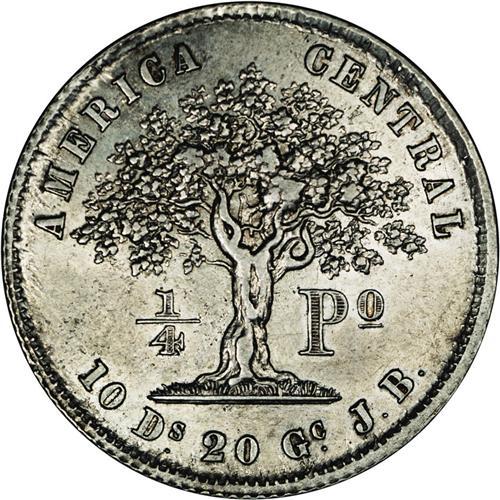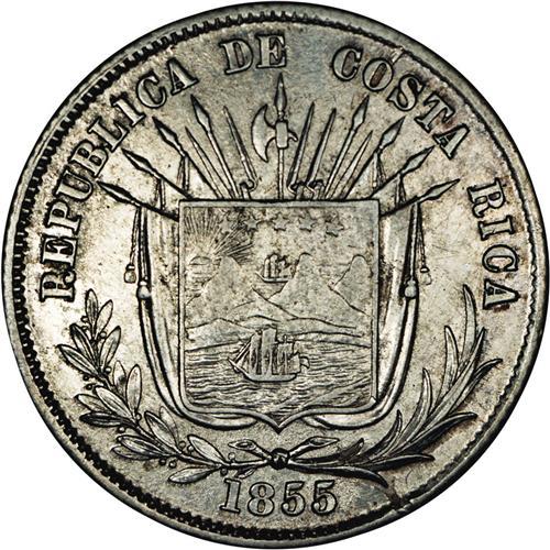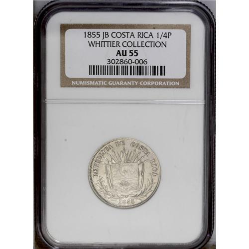 <B>Republic 1/4 Peso 1855-JB, </B></I>KM103, AU55 NGC, very bold date, remarkably sharp strike with abundant mint luster. Extremely rare date in this quality and believed to be the finest known. Vastly underrated in the standard catalogs.