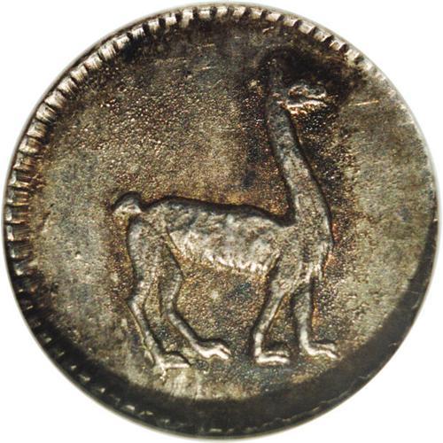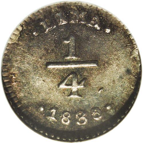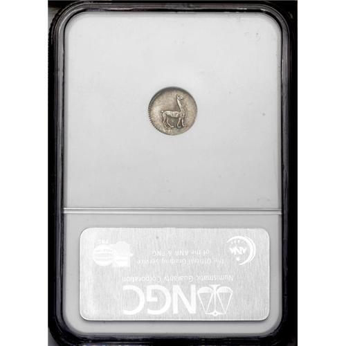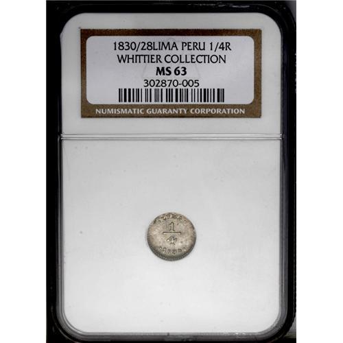 <B>Republic 1/4 Real 1830/28 Lima, </B></I>KM143.1, MS63 NGC, a choice toned example with bold overdate details.