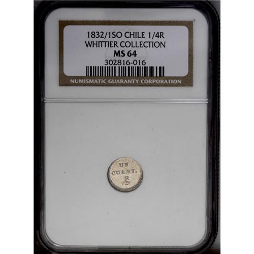 <B>Republic 1/4 Real 1832/1-So, </B></I>KM89, MS64 NGC, fully lustrous and rarely seen in this top quality.