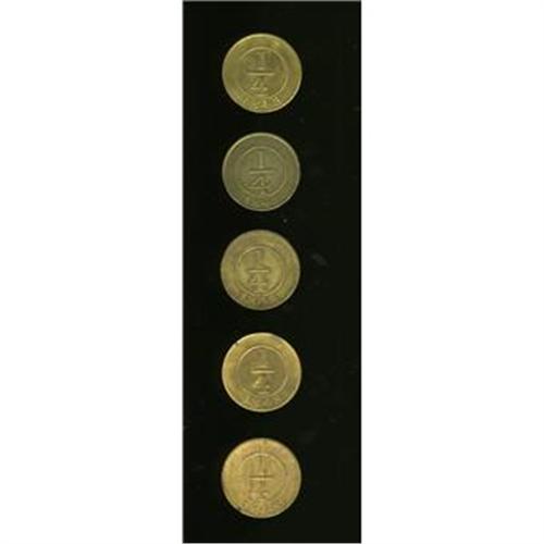 <B>Republic 1/4 Real 1848 - Variety Collection, </B></I>KM2, plain 4, four examples including: toned XF, deteriorating obverse legends (late die state), bold XF, lightly cleaned, XF-AU, E over R in REPUBLICA, and nice original XF with a trace of luster, and crosslet 4, two pieces, nice VF, lightly porous surface and cleaned XF-AU. A very interesting study group. <B>Sold as is, no return lot.</B></I>
