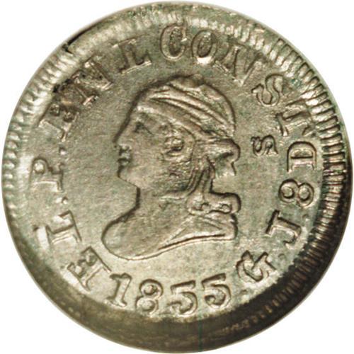 Republic 1/4 Real 1855-GJ, KM36, MS64 NGC, lightly tone Republic 1/4 Real 1855-GJ,