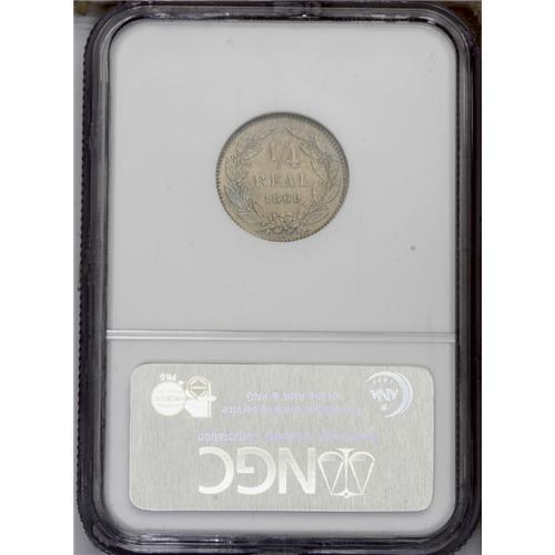 <B>Republic 1/4 Real 1869A, </B></I>KM31, MS64 NGC, fully lustrous with very light toning.