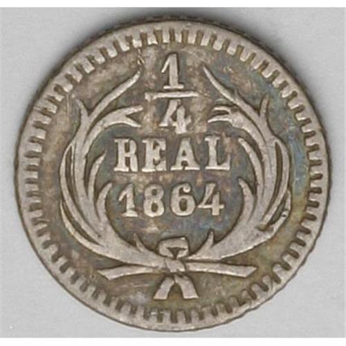 Republic 1/4 Real - Two Dates, KM130, 1864, toned VF, s Republic 1/4 Real - Two Dates,