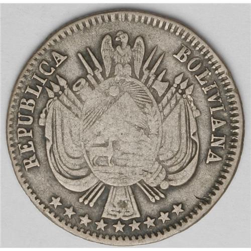 Republic 1/5 Boliviano - Two Dates, KM151.2, stars clos Republic 1/5 Boliviano - Two Dates,