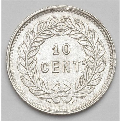 <B>Republic 10 Centavos 1881, </B></I>KM204, nice UNC, abundant mint luster, very scarce quality.