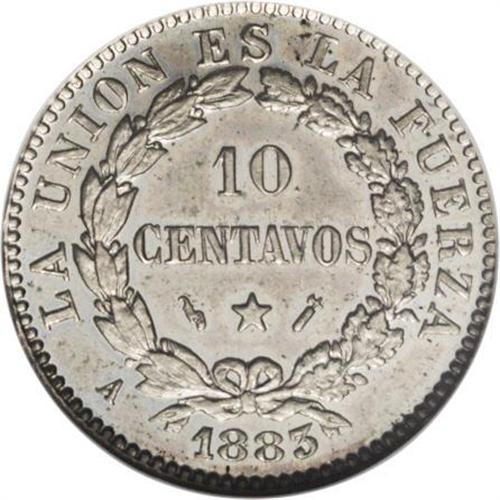 <B>Republic 10 Centavos 1883A, </B></I>KM170.1, Proof 63 NGC, ex-Farouk Collection and Baldwins 10-11-1999, Lot 1175.