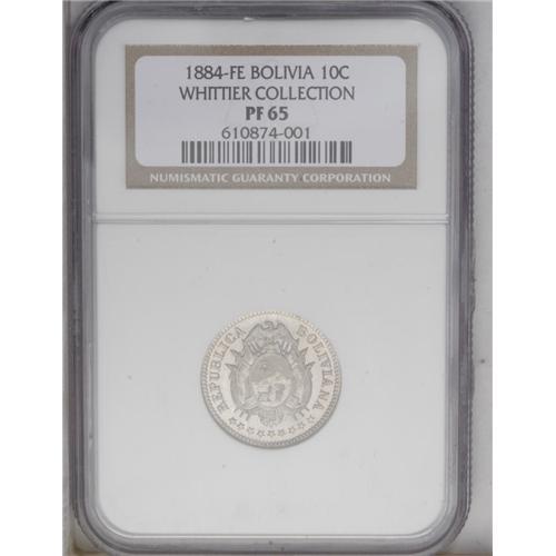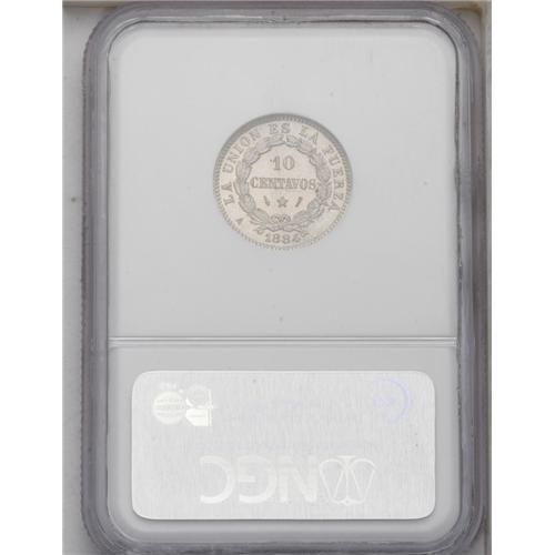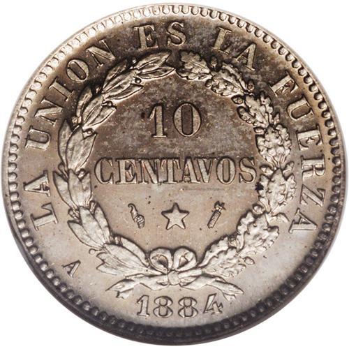 <B>Republic 10 Centavos 1884A, </B></I>KM170.1, Proof 65 NGC, extremely rare date with only two examples known.