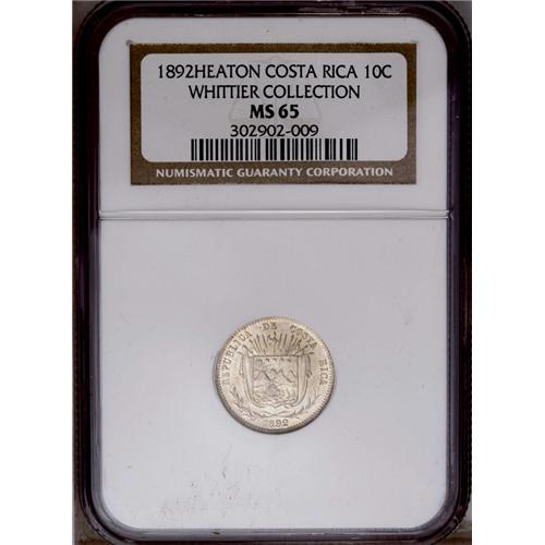 Republic 10 Centavos 1892 Heaton, KM129, MS65 NGC, a su Republic 10 Centavos 1892 Heaton,