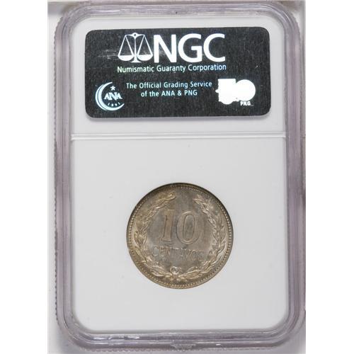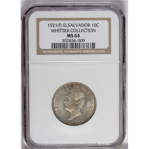 <B>Republic 10 Centavos 1921, </B></I>Ex: Whittier Collection, KM130, MS64 NGC, a beautiful, fully lustrous coin with very light and attractive toning. Rare date in this select quality.<BR><BR><b>Shipping:</b> Coin/Currency (<a target="_blank" href="http://www.heritageauctions.com/common/shipping.php">view shipping information</a>)