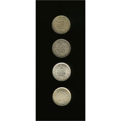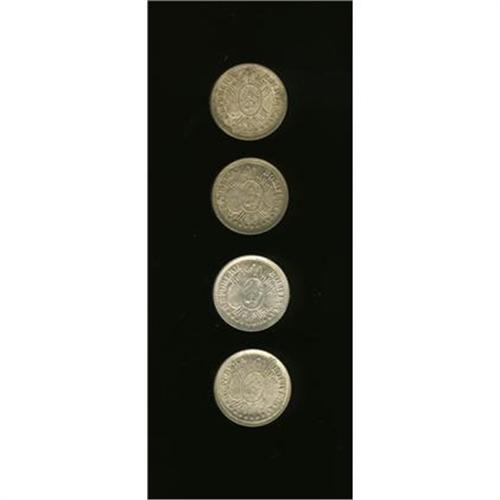 <B>Republic 10 Centavos Date Quartet, </B></I>KM158.3 1889-FE, choice toned UNC, 1890-FE, choice UNC, superb patina, 1890-CB, brilliant UNC and 1891-CB, choice UNC. <B>Sold as is, no return lot.</B></I>