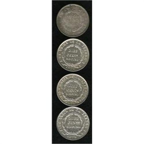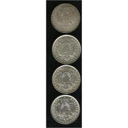 <B>Republic 10 Centavos Date Run, </B></I>KM158.2 1876-FE, choice toned UNC, 1877-FE, AU, 1878-FE, bold AU-UNC, scarce date, and 1879-FE, nice AU. <B>Sold as is, no return lot.</B></I>