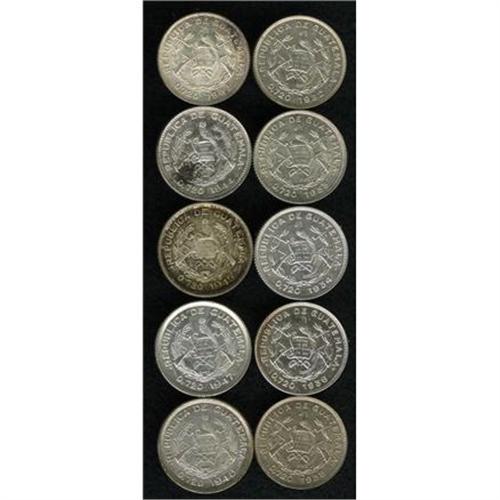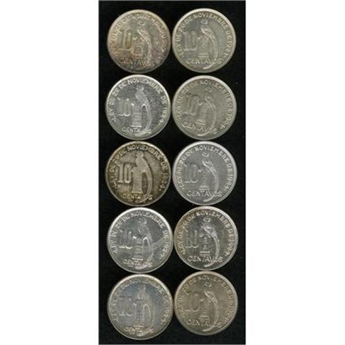 <B>Republic 10 Centavos Date Run, </B></I>ten coins, all UNC except as noted: KM239.2 1932, 1933, 1934 AU, 1936, 1938 and 1943, and KM239.1 1944, 1945, 1947 and 1948. <B>Sold as is, no return lot.</B></I>