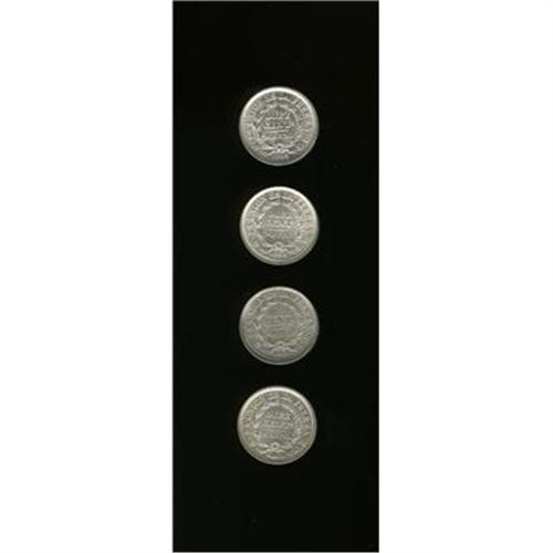 <B>Republic 10 Centavos - Four Dates, </B></I>KM158.3, bar below CENTs, 1885-FE, nice AU, 1886-FE, brilliant UNC, 1887-FE, nice AU, scarce, and 1888-FE, nice UNC, crude die state at date area, scarce date. <B>Sold as is, no return lot.</B></I>